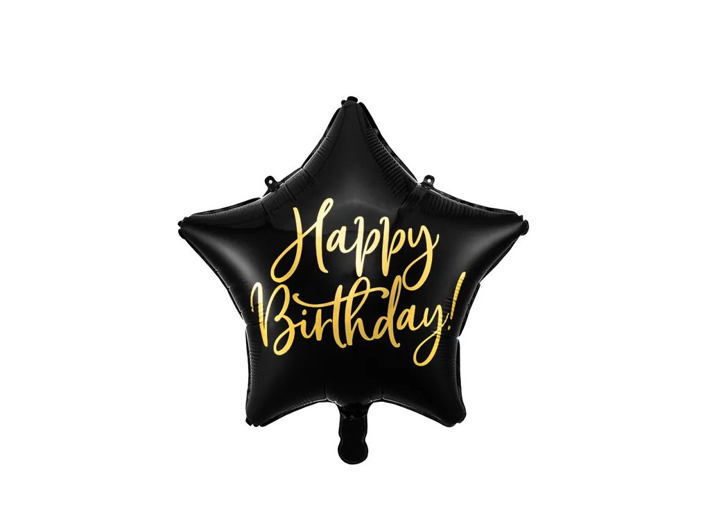 Fóliový balón hviezda Happy Birthday čierna, 40cm