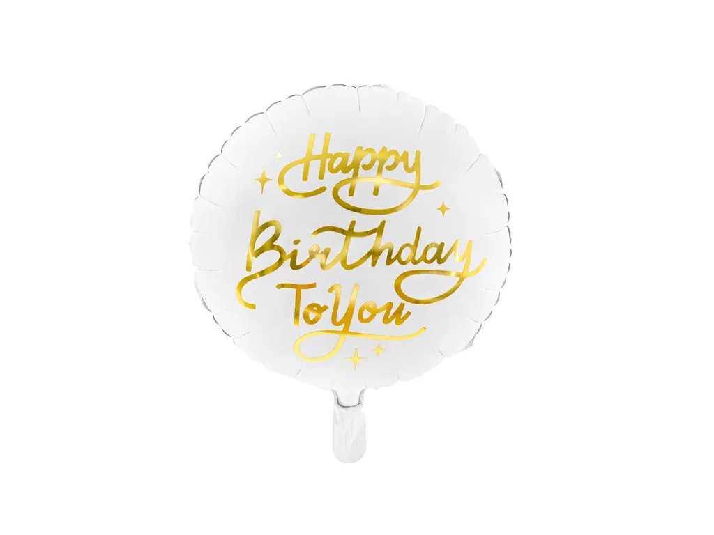 Fóliový balón kruh Happy Birthday biely, 35cm