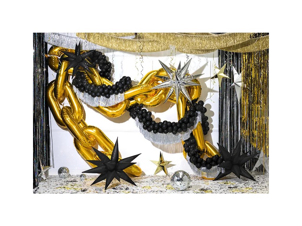 Girlanda z fóliových balónov v zlatej farbe, veľkosť jedného očka 86 cm (34''), veľkosť nafúknutej girlandy cca 6,7 m. Sada obsahuje 14 fóliových balónov a slamku.