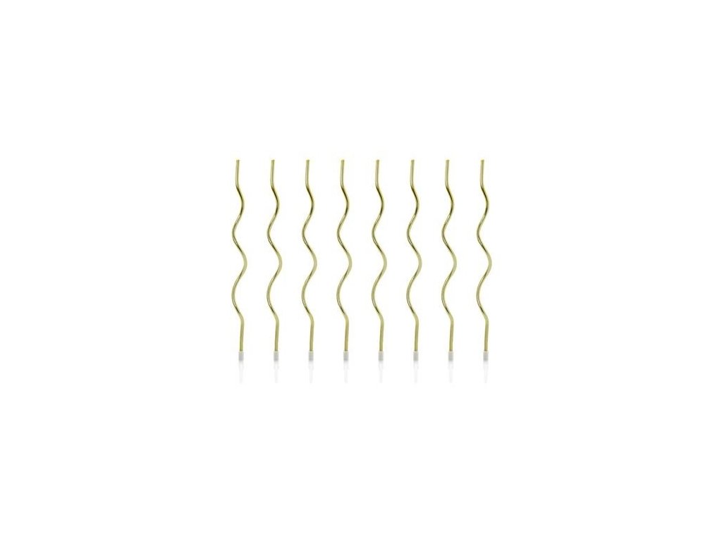 Elegantné tortové sviečky by nemali chýbať na žiadnej narodeninovej torte. Sviečky sú špirálové, metalické zlaté farby. Dĺžka sviečok je 14cm. Balenie 8 kusov.